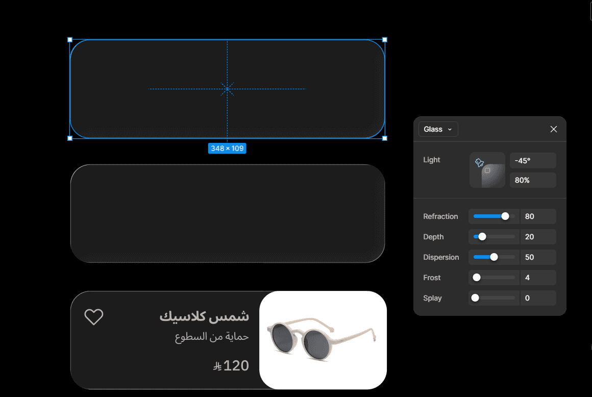 تم استخدام تأثير الزجاج (Glass Effect) في بطاقة المنتج لإضافة عمق بصري ولمسة حديثة على التصميم، مع الحفاظ على وضوح المحتوى وسهولة القراءة